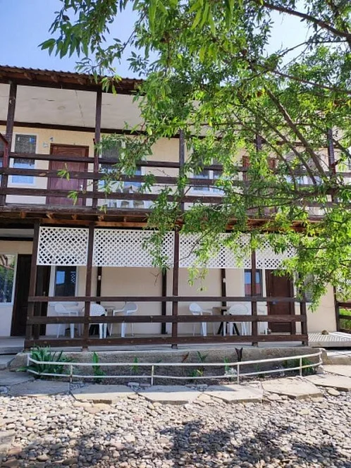 2 здание 2х-этажное, в нем расположены 2 номера (на разных этажах). Номера площадью 35 кв.м. каждый, рассчитаны для проживания 4-5 чел., сделаны как студио.